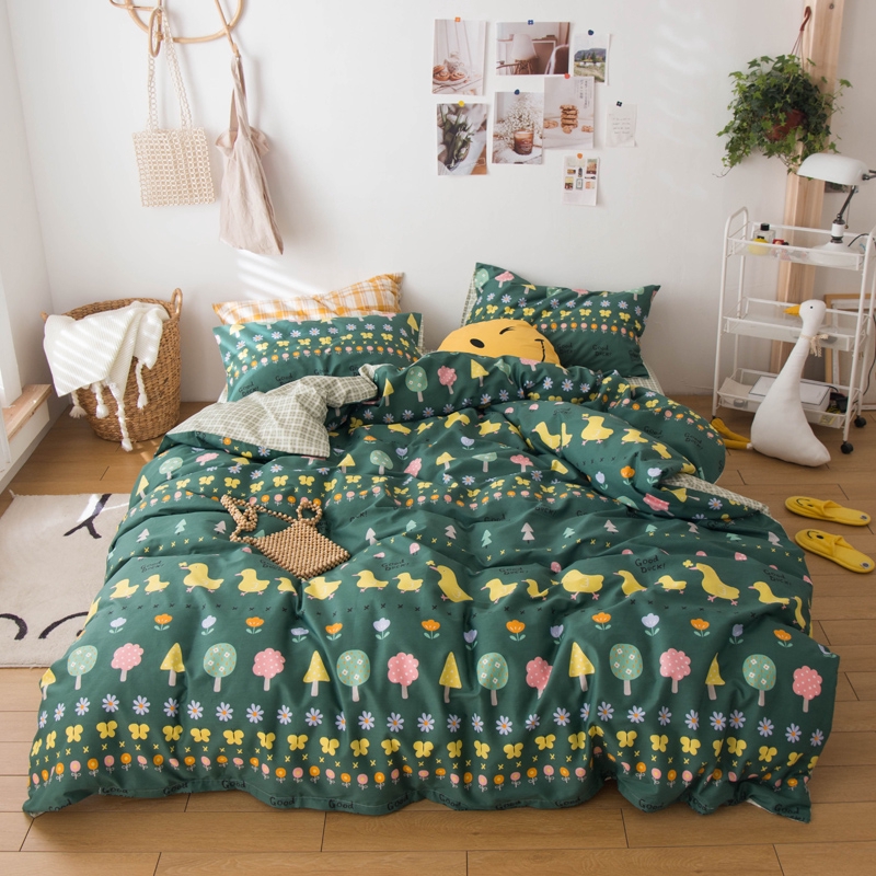 Hijau Bebek Floral Floral Cotton Empat Piece Set Tipis Bed Sheet Quilt Bed Bed Sheet Quilt Anak Lucu Shopee Indonesia