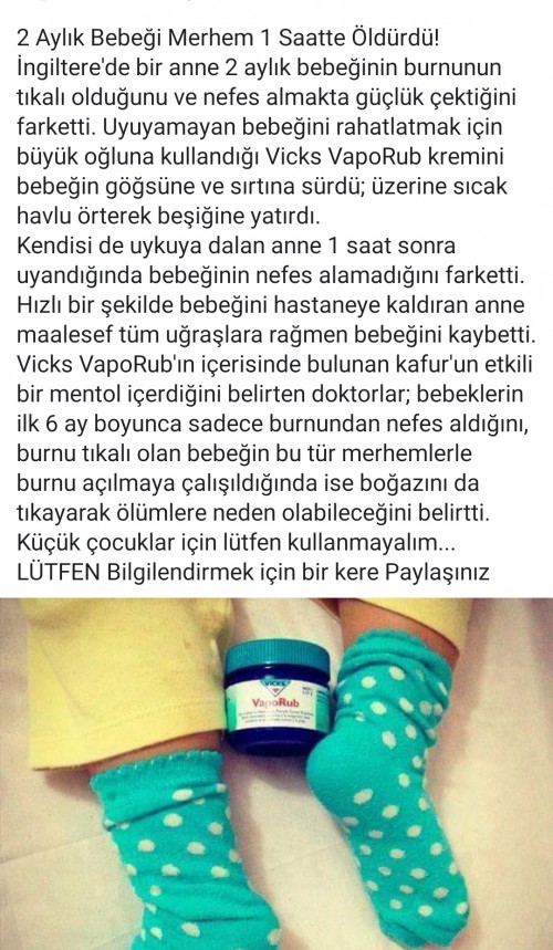 Vicks Vaporub 2 Aylik Bebegi Merhem 1 Saatte Oldurdu Kadinlar Kulubu