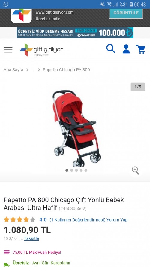 Papetto Pa 800 Tek Cift Yonlu Bebek Arabasi Fiyatlari Akrep Com